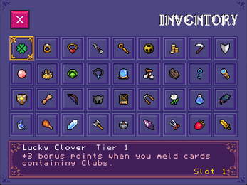 Meldryn is single-player Rummy based game with a twist: every match, you can bring enchanted items to the table. A Lucky Clover quietly adds bonus points whenever you meld a Clubs card. A Crystal Ball lets you peek the stock pile before you commit. Jester's Bell forces an opponent to discard and redraw the moment you lay something down. Crown of Ruin makes them dump three cards every time you play.